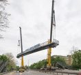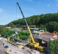 Auf dem St. Wendeler Bahradweg wurde die noch fehlende Radbrücke am Bahnhof Türkismühle erfolgreich mit dem Autokran einghoben.