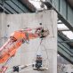 Mit Hilfe von Kernbohrungen wurden dazu im oberen Bereich der Pfeiler Löcher gebohrt, durch die Stahlseile geführt wurden. Außerdem wurde die Struktur des Pfeilers gegenüber der Fallseite strukturell geschwächt, was das Umziehen erleichtert. Über die angebrachten Seile wurden die beiden Pfeiler mit Hilfe von Baggern kontrolliert zu Fall gebracht, die aufliegende Stahlträger wurden dabei aus dem Widerlager gezogen und sind wie geplant hinter die umgezogenen Pfeiler gefallen.