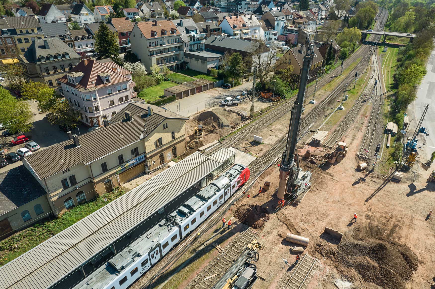 Die vorbereitenden Maßnahmen sind nahezu abgeschlossen. Derzeit laufen die Verbauarbeiten sowie die Herstellung der Austauschbohrungen. Die Inbetriebnahme der neuen Personenunterführung, der Aufzugsanlagen sowie des verlängerten Bahnsteigs ist für Anfang 2027 vorgesehen.