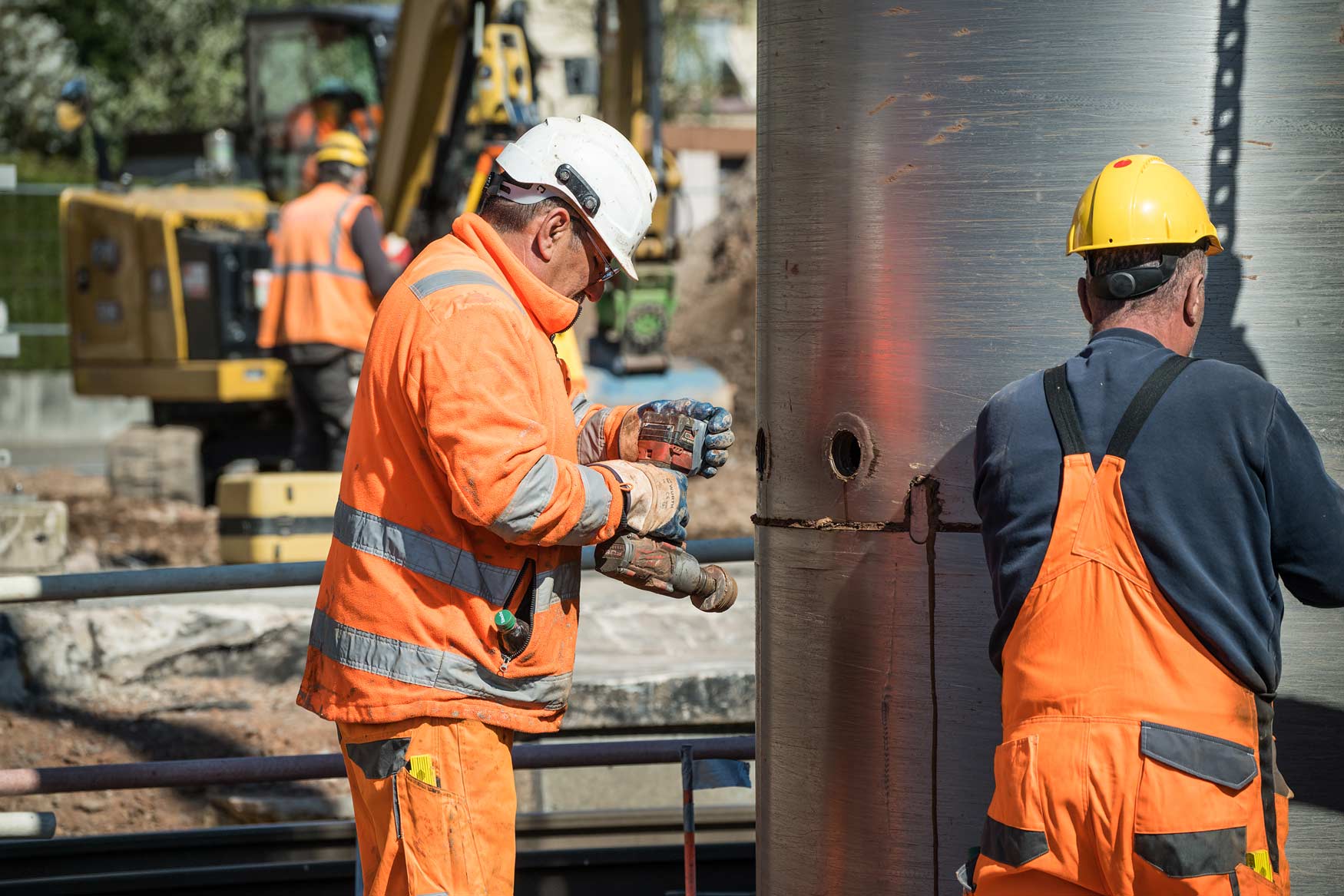 Bevor der Bau starten konnte, mussten zahlreiche Versorgungsleitungen im Bereich des Bahnhofs umverlegt werden. Besonders herausfordernd war die sichere Verlegung einer Sauerstoffleitung, die für die Versorgung des benachbarten Stahlwerks essenziell ist.