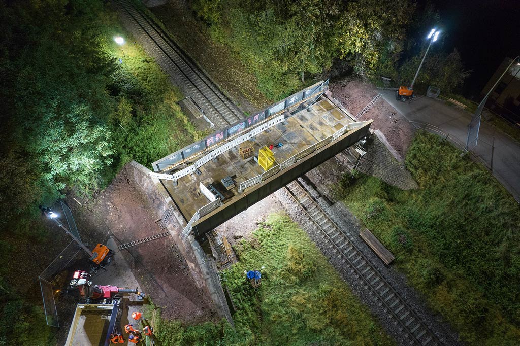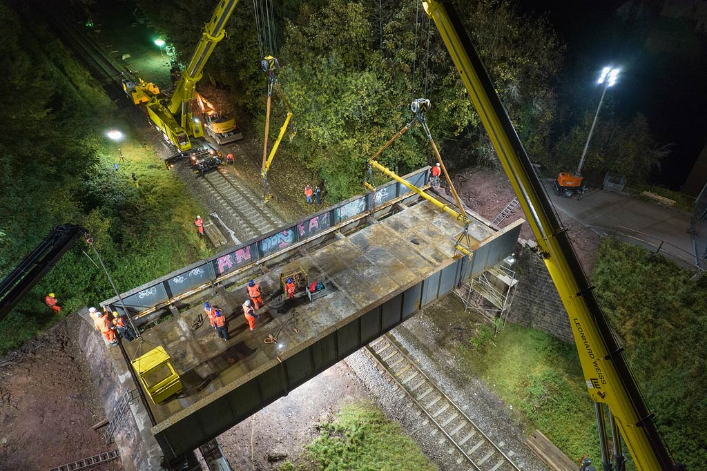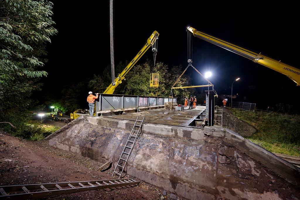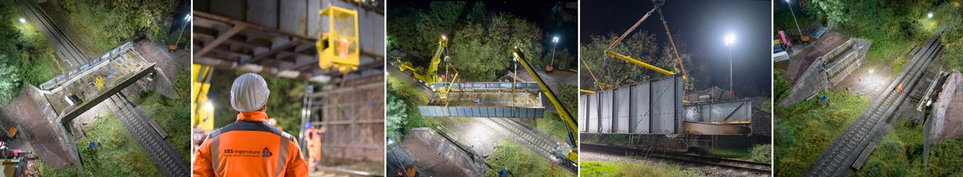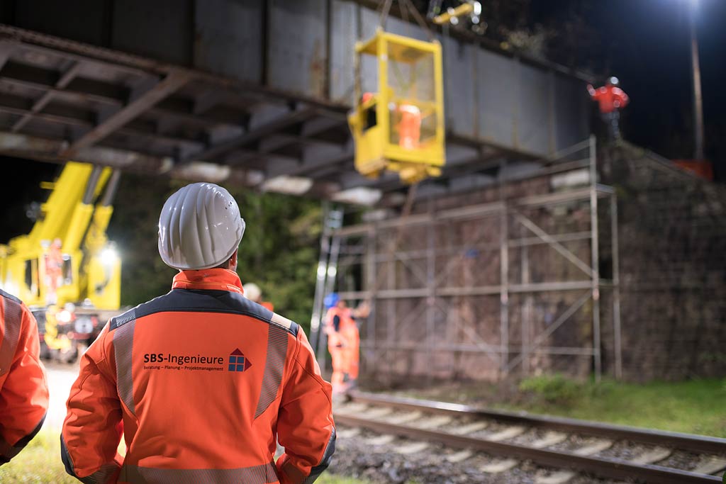 Die SBS-Ingenieure übernahmen dabei zum einen die Ausschreibung für den Rückbaus der Straßenüberführung im Sinne einer Notmaßnahme und zum anderen die örtliche bzw. baubegleitende Bauüberwachung. Aufgrund der Anforderungen der Deutschen Bahn lag ein besonderes Augenmerk bei der Bauüberwachung auf die bahnbetriebliche Sicherheit und Koordination der Bauausführung.