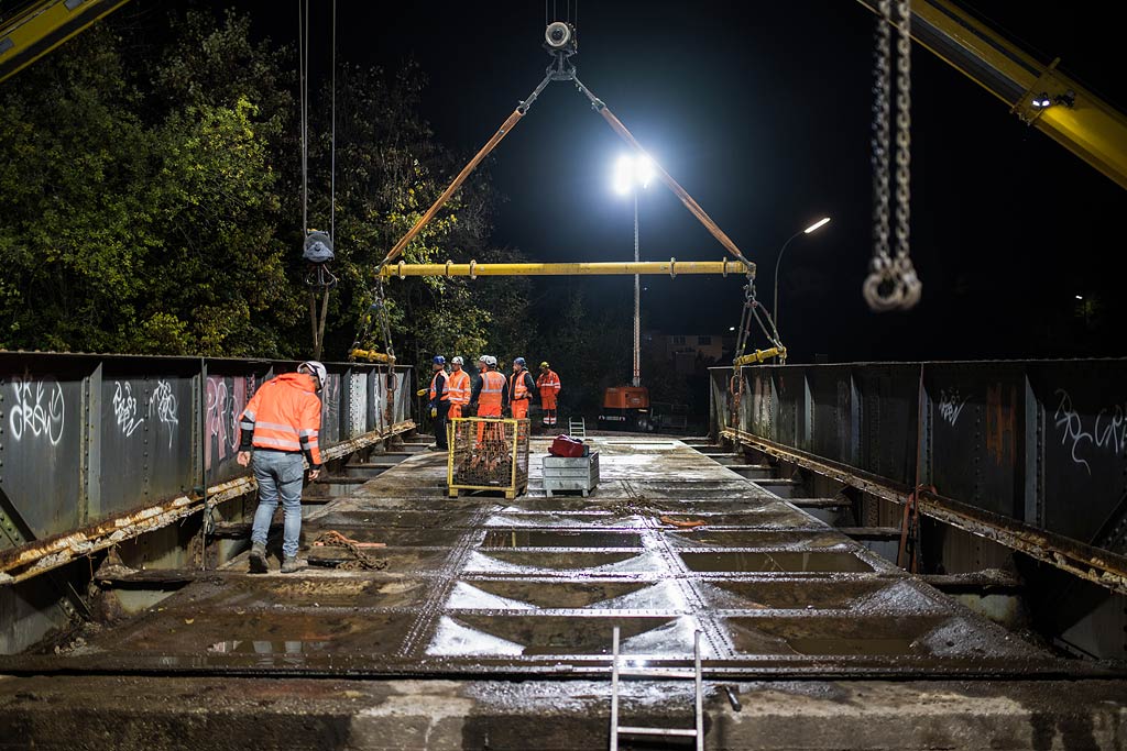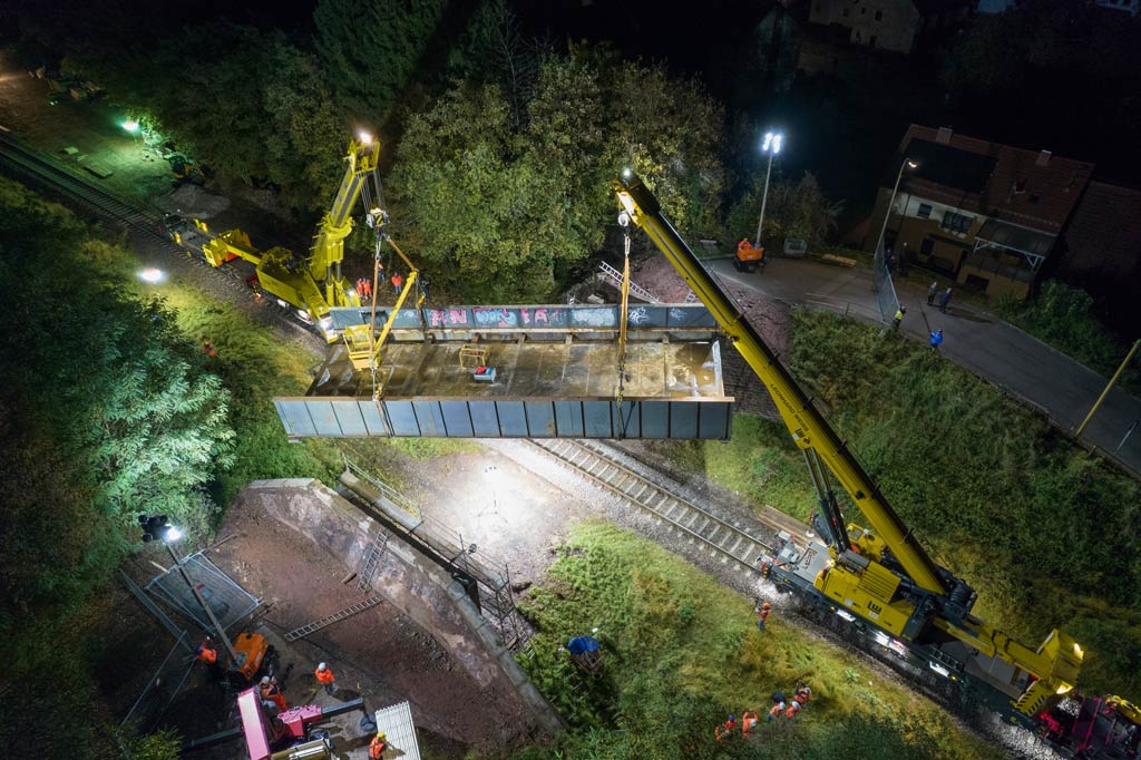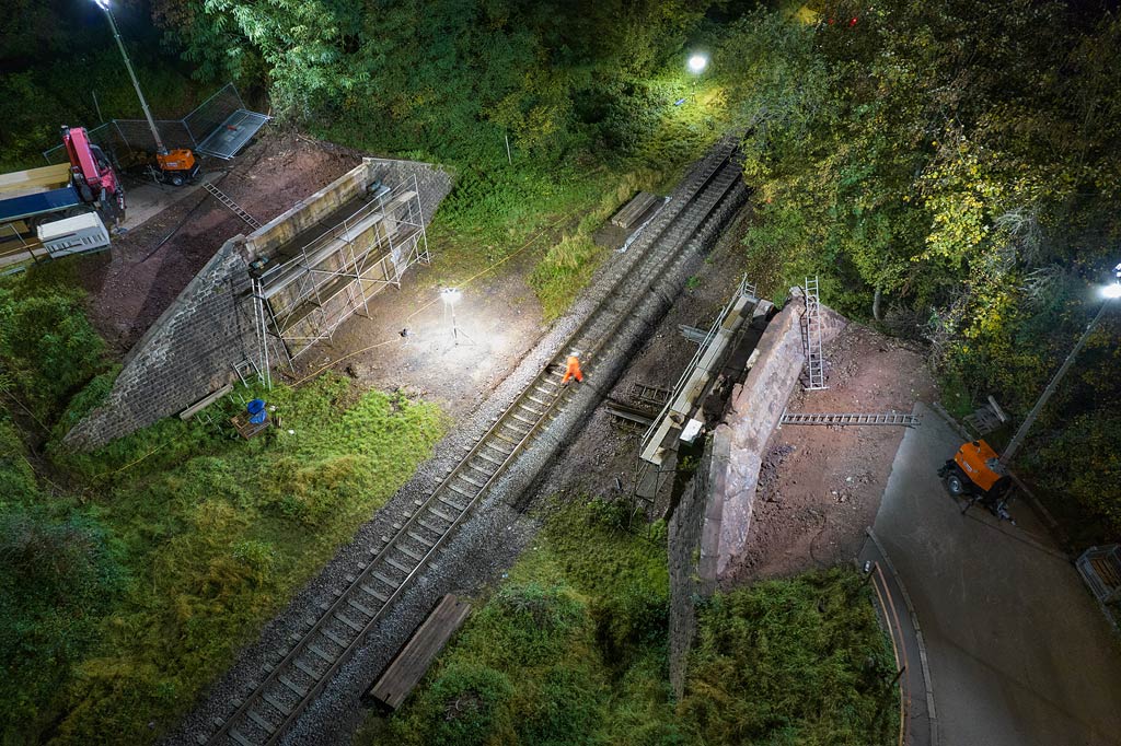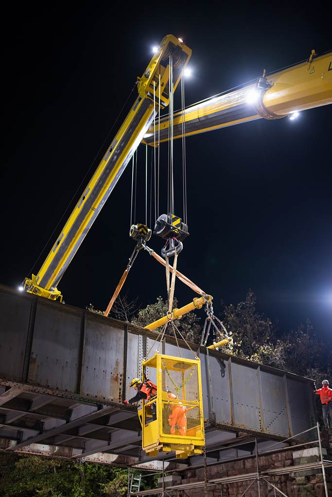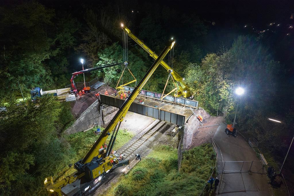 Die SBS-Ingenieure übernahmen dabei zum einen die Ausschreibung für den Rückbaus der Straßenüberführung im Sinne einer Notmaßnahme und zum anderen die örtliche bzw. baubegleitende Bauüberwachung. Aufgrund der Anforderungen der Deutschen Bahn lag ein besonderes Augenmerk bei der Bauüberwachung auf die bahnbetriebliche Sicherheit und Koordination der Bauausführung.