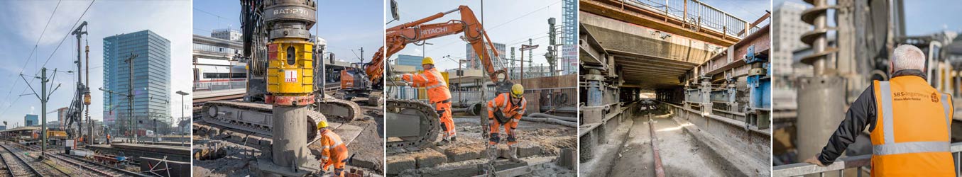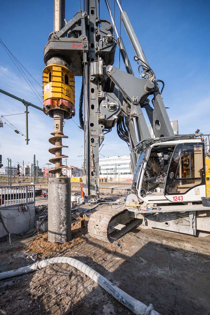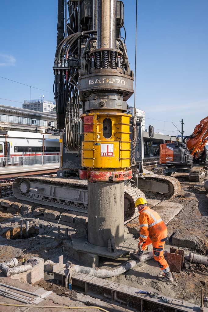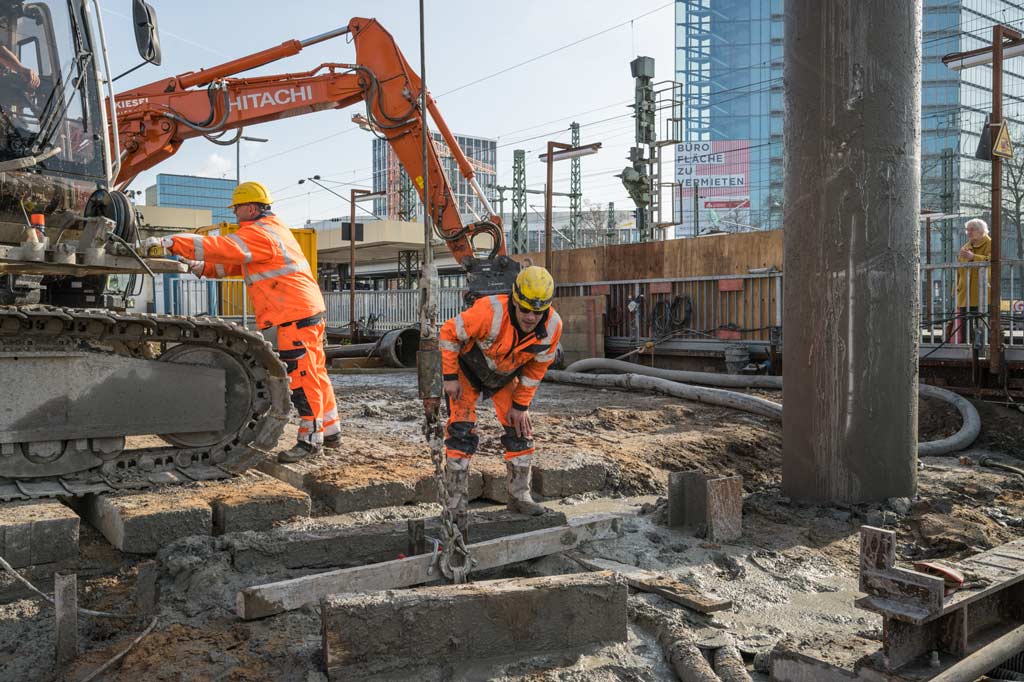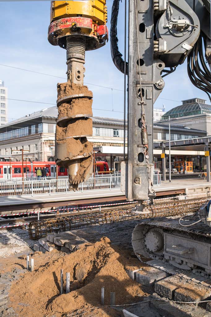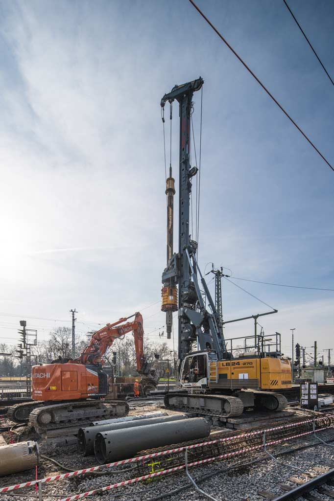 Für die vorlaufende Herstellung der 135 Bohrpfähle, wurden teilweise Bahnsteigdächer und Bahnsteige zurück gebaut und Bahnsteighilfsbrücken eingebaut. Aufliegend auf den Bohrpfählen werden anschließend Gleishilfbrücken eingebaut, dafür werden die Gleise einzeln ausgebaut und die bestehende Tunneldecke abgebrochen. Anschließend werden die Hilfsbrücken oberhalb der EÜ eingehoben und die einzelnen Gleise wieder in Betrieb genommen.