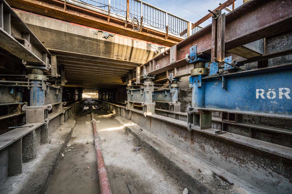 Sobald der Einbau der Gleishilfsbrücken für alle acht Gleise abgeschlossen ist, kann mit dem Rückbau des restlichen Bestandsbauwerks und der Herstellung der acht Stahlbeton-Halbrahmen begonnen werden, die von der Nordseite des Bahnhofs aus unter den Hilfsbrücken zur neuen Brücke zusammengeschoben werden.