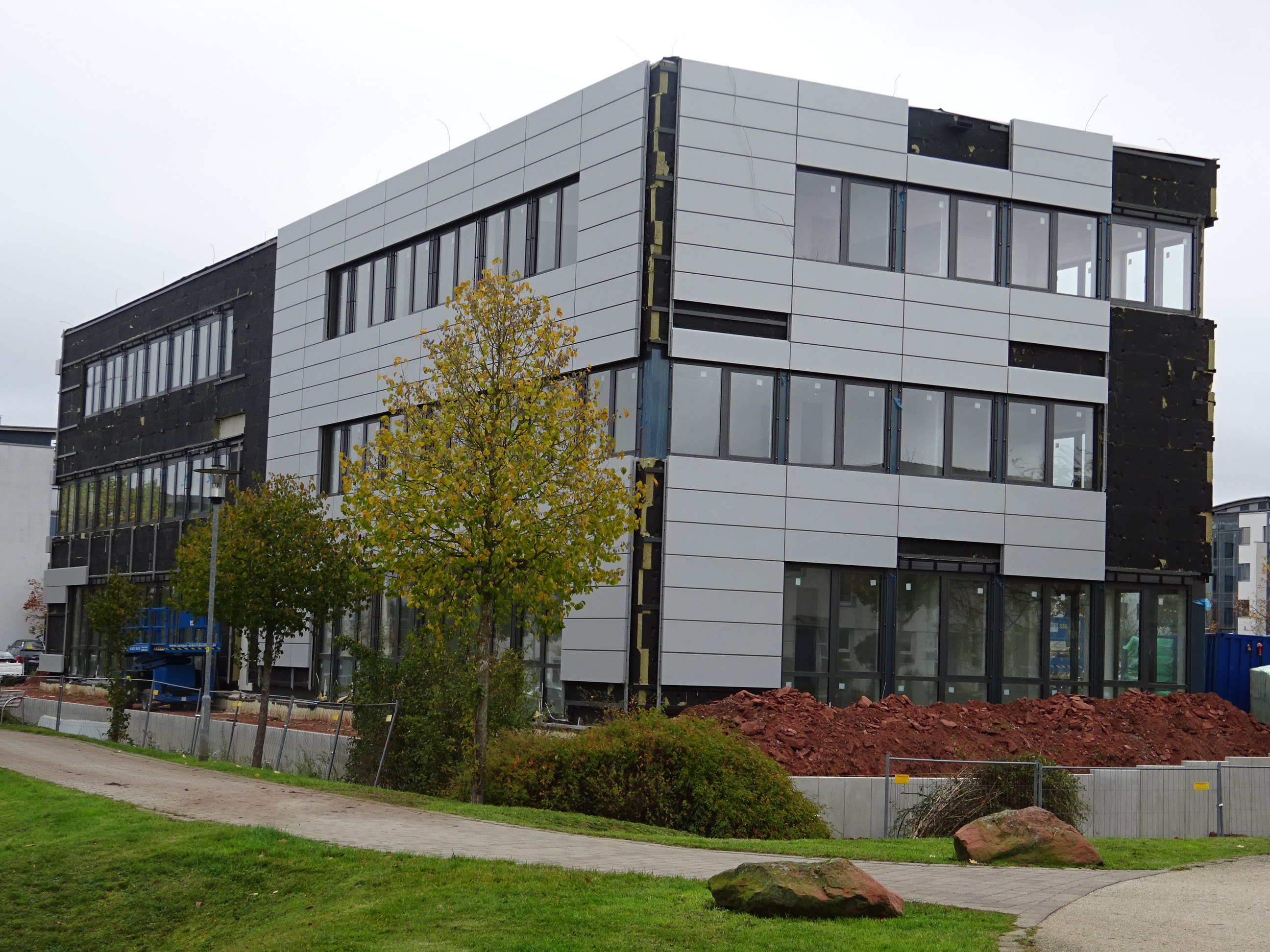 Der Neubau unseres Büros in Kaiserslautern schreitet immer weiter voran. Der Innenausbau ist in vollem Gange. Im Außenbereich sind die Kanäle bereits verlegt und die Arbeiten am Parkplatz werden ausgeführt. Als Fertigstellungstermin ist immer noch Ende November vorgesehen, sodass der Umzug der Kaiserslauterer Kollegen wie geplant im Dezember stattfinden kann.