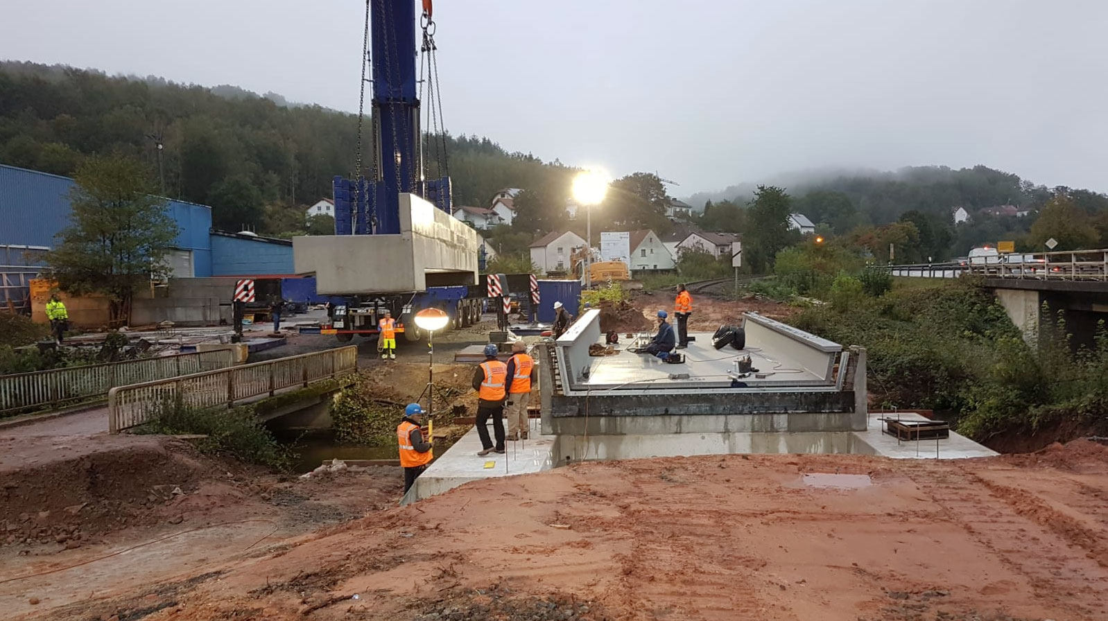 | Konstruktion: | Stahltrogbrücke (Dickblechwanne) auf massiven Unterbauten in Stahlbetonbauweise |