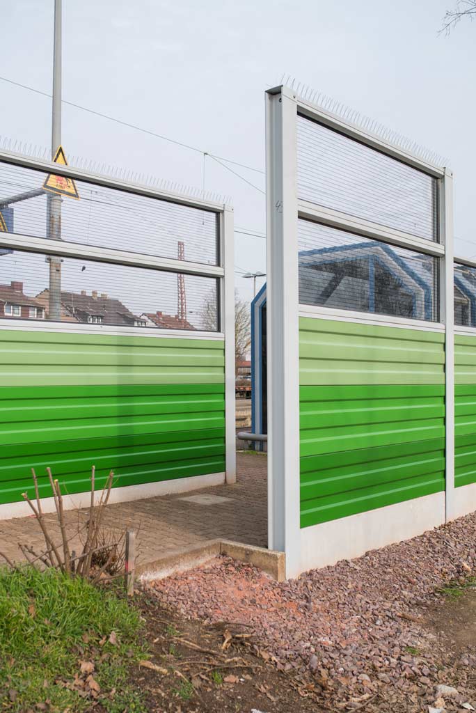 Im Rahmen des Lärmsanierungsprogramms an Schienenwegen des Bundes werden im Bereich der Ortsdurchfahrt Saarlouis (Strecke 3230) Lärmschutzmaßnahmen durchgeführt. Dabei sind aktive Lärmschutzmaßnahmen in Form von Lärmschutzwänden vorgesehen. Im Zuge der Baumaßnahme werden sechs Lärmschutzwandabschnitte mit Längen zwischen 168 m und 618 m errichtet. Die Lärmschutzwände bestehen aus Stahlpfosten mit dazwischen gesetzten, austauschbaren und einseitig hoch absorbierenden Leichtmetallelementen. Im Bereich von Eisenbahnüberführungen über Straßen werden die Leichtmetallelemente beidseitig hoch absorbierend ausgeführt. Für die LSW-Pfosten werden sowohl Tiefen- als auch Flachgründungen hergestellt, dazwischen werden Betonsockel errichtet. In den Lärmschutzwänden werden Service- und Rettungszugänge inklusive Podesten und Treppen sowie Kleintierdurchlässe angeordnet. Der Bau der Lärmschutzwände erfolgt größtenteils in Sperrpausen ausgehend von der Bahnseite.