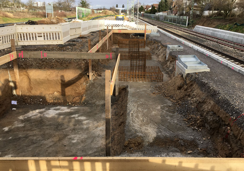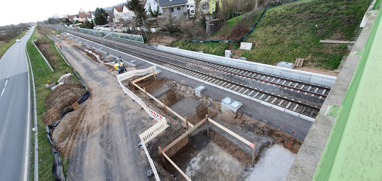 Die neuen Außenbahnsteige des Hp Weinheim-Sulzbach werden im Rahmen der 2. Ausbaustufe der S-Bahn Rhein-Neckar unterhalb der Straßenüberführung (SÜ Dammweg) neu errichtet. Der Außenbahnsteig an Gleis 1 ist über eine Treppenanlage und einen neuen Aufzug von der SÜ Dammweg sowie vom angrenzenden P+R Platz der Gemeinde Weinheim-Sulzbach zu erreichen. Den Bahnsteig 2 erreicht man ausschließlich über den Treppenzugang und den Aufzug von der SÜ Dammweg aus. Zur Herstellung des Bahnsteigs 2 sind aufgrund der Lage im Anschnitt einer bestehenden Böschung umfangreiche Erd- und Verbauarbeiten sowie die Herstellung einer verbleibenden Stützwand, auf der auch die Treppenkonstruktion am Bahnsteig 2 gegründet ist, erforderlich. Beide Treppentürme und Podestkonstruktionen werden im Werk vormontiert, vor Ort unter durchgehender Gleissperrung des Richtungs-, bzw. Gegengleises eingehoben und endmontiert.