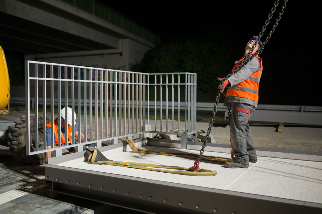 | Weitere Bauteile: | 2 Aufzugsanlagen, Neubau einer Stützwand: Spundwand als Jagged-Wall mit StB-Kopfbalken, Neubau einer Gabionenwand als Lückschluss zwischen Spundwand und bestehendem Dükerbauwerk |