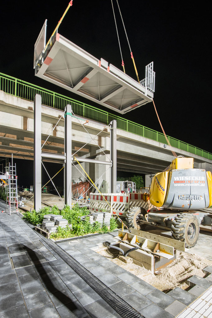 | Konstruktion Treppentürme: | 2 Treppentürme in Stahlbauweise mit Anbindung an die bestehende SÜ Dammweg und an die neuen Aufzugsanlagen über Podeste |