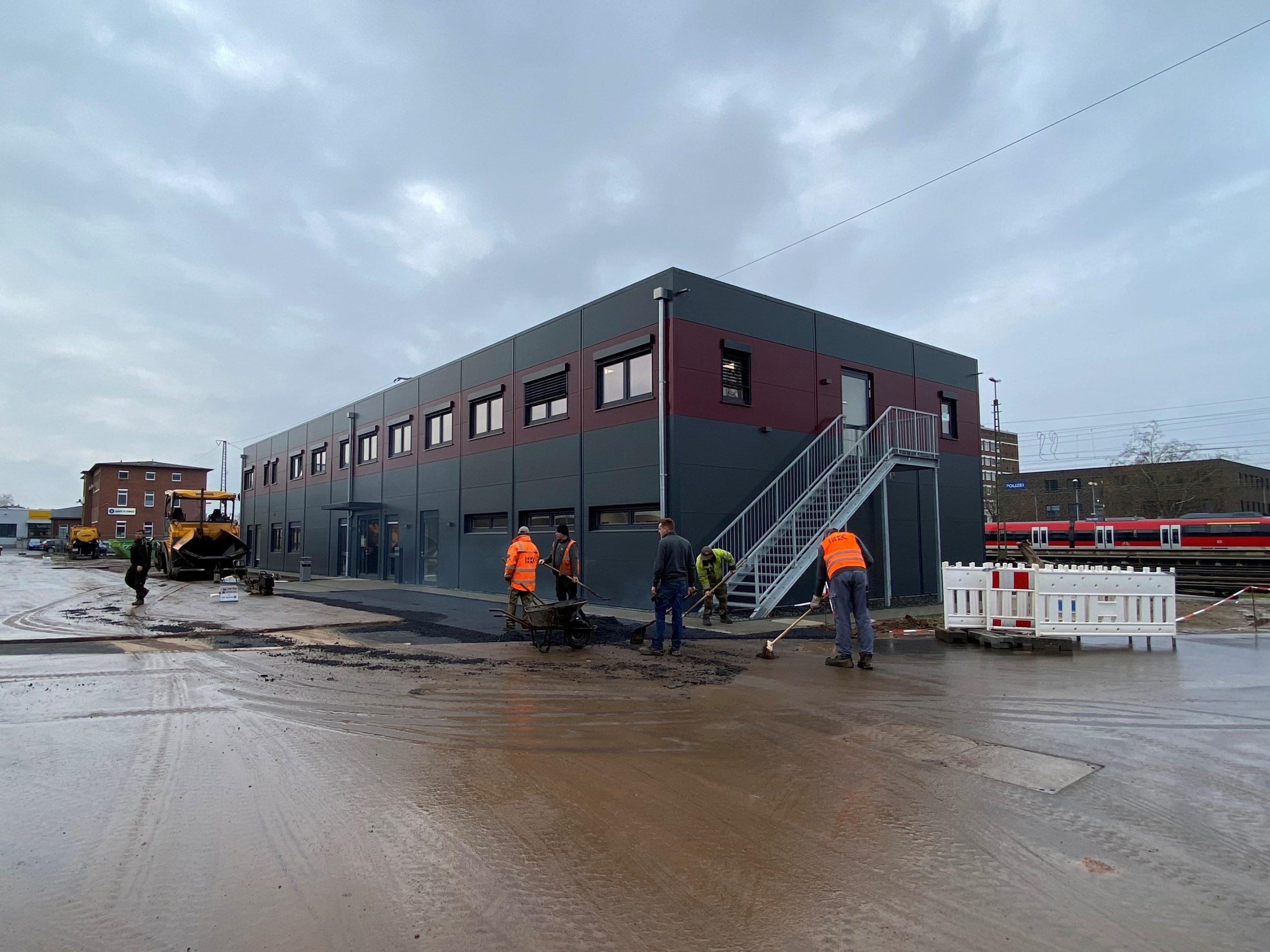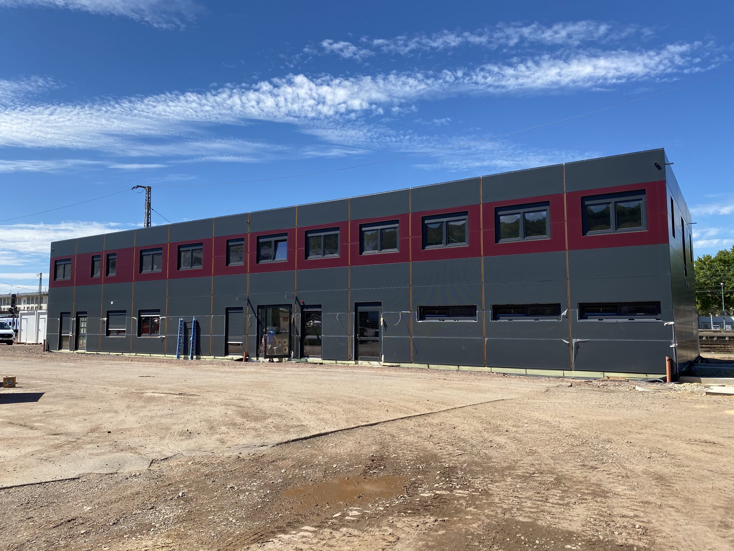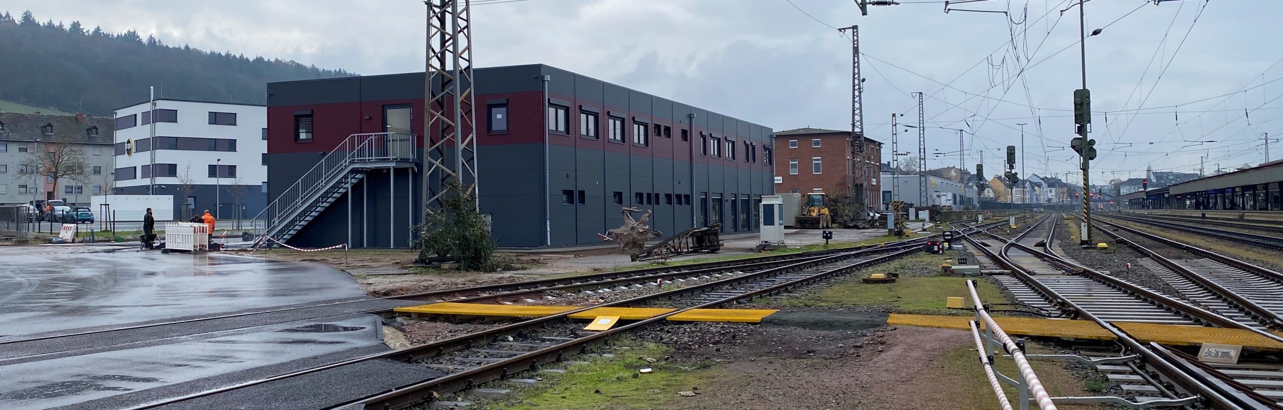 Am Hauptbahnhof in Trier wird ein Instandhaltungsstützpunkt der DB Netz AG neu gebaut. Dabei handelt es sich um ein Betriebsgebäude mit Büroräumen mit insgesamt 27 Arbeitsplätzen, 2 Besprechungsräumen und Wasch- und Umkleideräumen für 45 Mitarbeiter. Die beiden Besprechungsräume und der Pausenraum sind durch mobile Trennwände unterteilt, sodass sie für größere Versammlungen zusammen genutzt werden können.